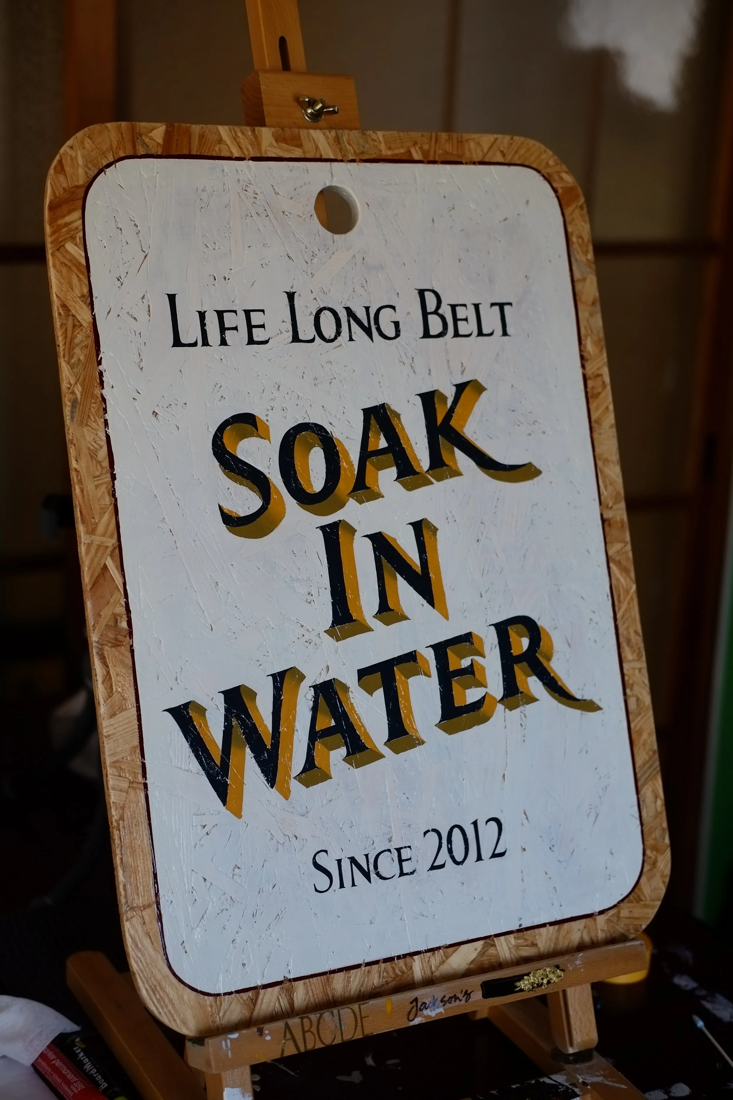 兵庫県神戸市を拠点とするベルト専業メーカーのイベント用に使われる看板を制作しました。パーティクルボードはクライアント様支給で、下地処理からペイントまでを担当しました。使えば使うほど味わいも愛着も湧く、長く使えるプロダクトを目指すブランドのイメージからデザインしています。ロマンという字体でクラシカルに。